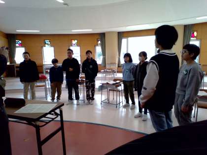 6年生 音楽の学習 公開日 2023/12/01 更新日 2023/12/01 6年生 歌の練習をしました。 自分たちの歌うパートの音を確認してから、通して歌いました。 高い音も、とってもきれいな歌声を響かせることができました。