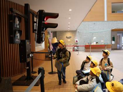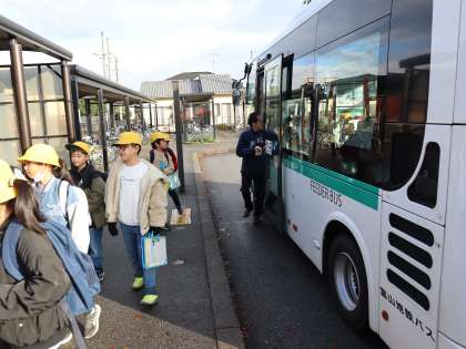 社会科見学で富山県警察本部に行きました。小学校から公共交通機関であるフィーダーバス、ライトレールに乗りました。初めて乗る子供がいて、小学校から簡単に富山駅に行けることに驚いている様子が見られました。警察本部では、通信指令室や信号機などを見てたくさんのことを学習することができました。