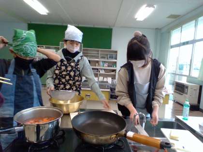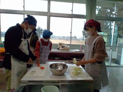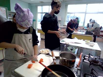 6年生 家庭科の学習 公開日 2023/12/11 更新日 2023/12/11 6年生 豆腐のチャンプルーを作りました。 まずは、材料を切ります。大きさや切り方を確認して切っていました。 合間に洗い物をしたり片付けをしたり、手際よく行うことができました。