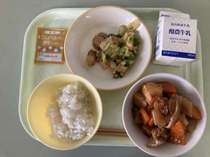 12月11日の給食 公開日 2023/12/11 更新日 2023/12/11 メール用カテゴリ 今日の給食は ごはん ぎゅうにゅう ほたてのこうみやき しょうがびたし すぶた ふりかけ です。 今日もおいしくいただきました。
