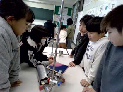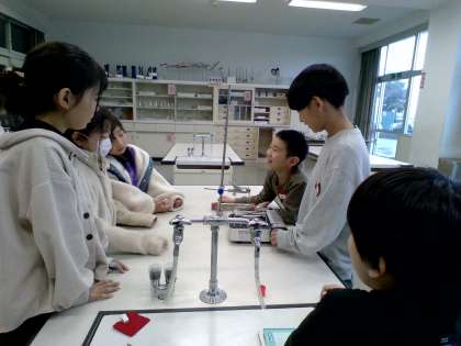 熱の伝わり方の実験をしました。 熱が伝わると色が変わっていく様子を見て、「すごい!」と声を上げていました。