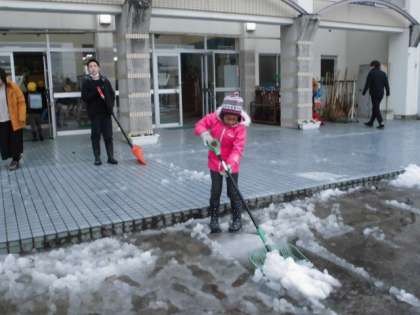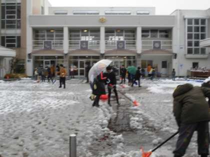 昨日降った初雪に子供たちは大喜び。朝登校したやいなや、「雪かきしてもいいですか?」と元気いっぱいに聞いてきました。登校した子供たちが次々と雪かきをしました。その数およそ30人。冬ならではの自主活動を終え、子供たちが満足げに校舎内に入っていきました。