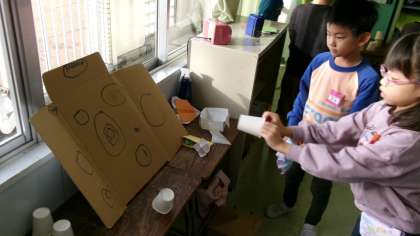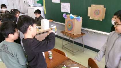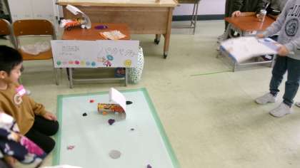 生活科で作ったうごくおもちゃで遊んでもらおうと1年生を招待しました。