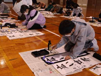 1、2年生は教室で、3〜6年生は体育館で書き初め大会を行いました。真剣な表情で一画ずつ丁寧に書く姿がたくさん見られました。冬休み中の練習の成果を発揮できた子が多くいたようです。