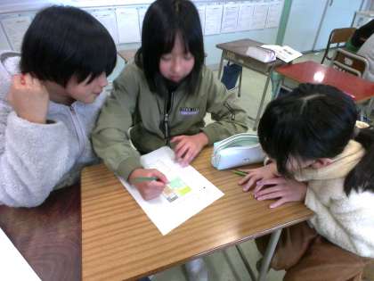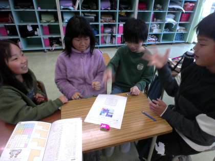 4年 算数科「広さの表し方を考えよう」 公開日 2024/01/10 更新日 2024/01/10 4年生 4人ずつのグループで陣取りゲームをしました。たくさんのマスを取るために、一生懸命考えながら色を塗っていました。ゲーム後は、どうしたら広さを比べられるか友達と相談し、順位をつけていました。