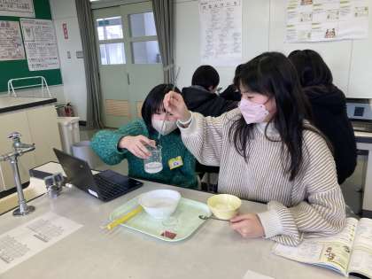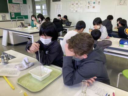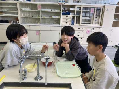 物の溶け方の学習をしています。温度によって食塩の溶け方は違うのかを実験しました。