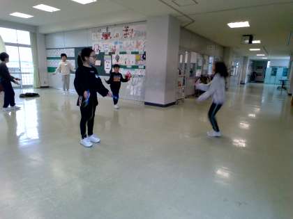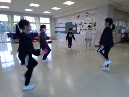 のびのびタイム 公開日 2024/01/18 更新日 2024/01/18 3年生 みんなで縄跳びをしていました。後ろ二重跳びや交差二重跳びにチャレンジしていました。「1回ならできたよ!」「片足二重跳びならできるよ!」と、いろんな技にも挑戦していました。