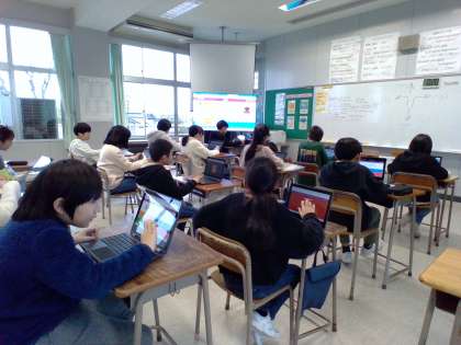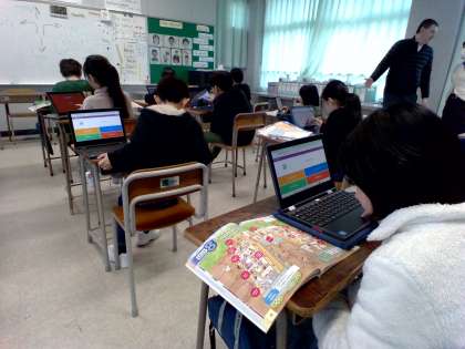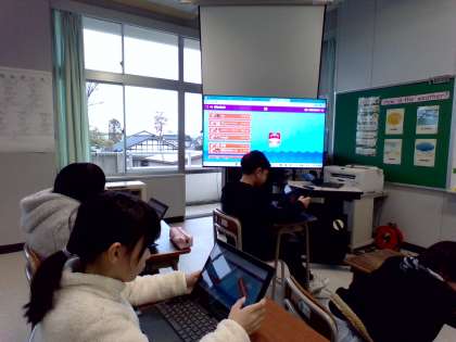 英語の質問に答えるゲームをしました。間違えずに答えると点数が増えていくため、何度も順位が更新されるので必死になって問題と向き合っていました。楽しく学習に取り組みました。