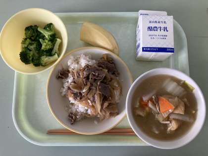 1月24日の給食 公開日 2024/01/24 更新日 2024/01/24 メール用カテゴリ 今日の給食は ごはん ぎゅうにゅう ゆでブロッコリー パワーぎゅうぎゅうどん(麦ご飯) ぐだくさんじる です。 給食週間3日目のテーマは、「筋力アップ献立」です。筋肉のもとになるタンパク質を「ぎゅうぎゅう」詰め込んだ牛丼でした。草島っ子みんなモリモリ食べました。
