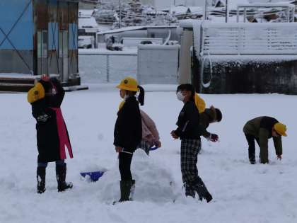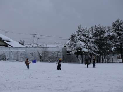 グラウンド一面が真っ白になっている様子でした。子供たちは、雪合戦や雪だるまをつくるなど雪遊びを楽しみました。