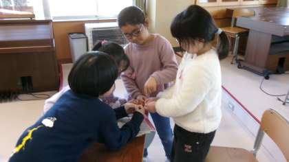 2年生 音楽 公開日 2024/01/25 更新日 2024/01/25 2年生 「ずいずいずっころばし」や「あんたがたどこさ」など日本のわらべ歌で遊びました。子供たちのお気に入りは、「なべなべそこぬけ」です。2人からクラス全員まで輪になって歌っていました。