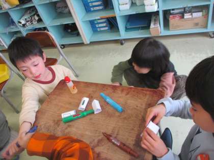 2月に、来年度入学する予定の年長児たちを招待して、交流会を行います。交流会では、小学校の体験学習会や学校案内をする予定です。国語科、算数科、生活科の3チームに分かれて、どんな学習体験をしてもらえば、新1年生が学校での学習を楽しみにしてくれるのかを考えました。内容が決まってから、グループで2週間の学習の計画を立て、活動を始めました。