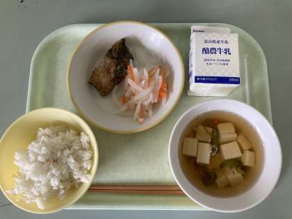 1月31日の給食 公開日 2024/01/31 更新日 2024/01/31 メール用カテゴリ 今日の給食は ごはん ぎゅうにゅう さかなのかばやき なます すましじる です。 今日もおいしくいただきました。