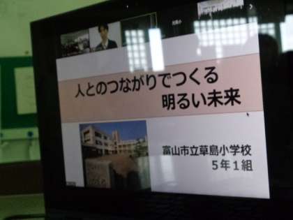 5年生を代表して6名が、富山市のSDGsESDシンポジウムで発表しました。学校に残った子供たちは、発表の様子をZOOMで見守りました。伝えたいことがしっかり伝わってるかをアドバイスしてきたので、無事発表できるかなど、それぞれの思いをもって真剣に画面に見入っていました。発表が終わると、みんな盛大な拍手をしていました。発表する側も見守る方も一生懸命に取り組み、貴重な体験ができました。