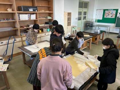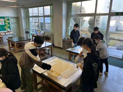 6年生 卒業プロジェクト「中庭をより素敵にしよう」 公開日 2024/02/08 更新日 2024/02/08 6年生 6年生は卒業プロジェクトとして中庭のステージに絵を描く計画をしています。 全校にアンケートを取り、どのような学校にしたいのか気持ちを聞きました。 その結果をもとに、デザインを考え描き始めています。 今日はそのキャンバスとなる白い板を完成させました。