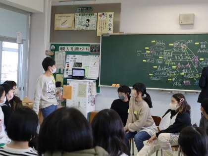 仲間の期待を背に口火を切ったYさんの「交流活動でコミュニケーションがとれるようになってきた」という発言から、子供たちがリレー形式で思いを伝え合いました。マイプラン学習や宿泊学習、学習発表会、秋祭り、SDGsESD富山シンポジウムなどなど、様々な思い出をあげながら「仲間と協力できる自分たち」を見いだす子供たちでした。