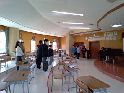 卒業式で歌う歌の練習をしました。パートごとに分かれて練習し、2ndパートでは、楽譜を見て音を確認したり、ピアノで音を取ってもらい歌ってみて音の高さを確認していました。