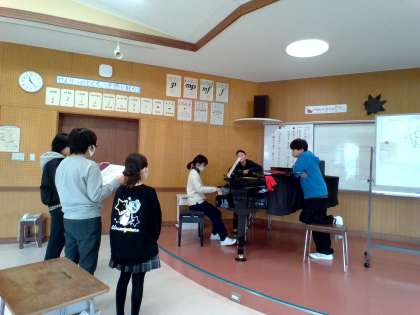 6年生 音楽の学習 公開日 2024/02/16 更新日 2024/02/16 6年生 卒業式で歌う歌の練習をしました。パートごとに分かれて練習し、2ndパートでは、楽譜を見て音を確認したり、ピアノで音を取ってもらい歌ってみて音の高さを確認していました。