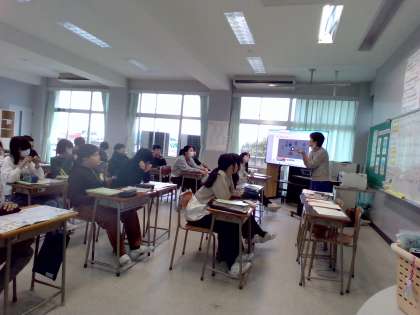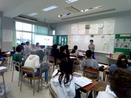 "in"や"on"の使い方について学習しました。「これはin Japanでいい?」と聞かれると「これは日本じゃないところでもあるから違うね!」と次々と英語で答えていました。