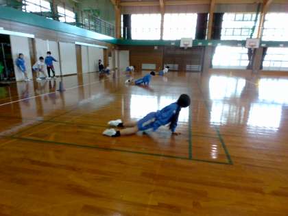 前半は、体育館で多様な動きの運動をしました。