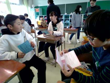 2年生 招待状を渡しに行きました 公開日 2024/02/28 更新日 2024/02/28 2年生 4時間目が終わってすぐに、6年生の教室に行って、卒業を祝う会の招待状を渡してきました。「ドキドキする〜!」と言いながらも、6年生から「ありがとう。」と言われてとっても嬉しそうでした。