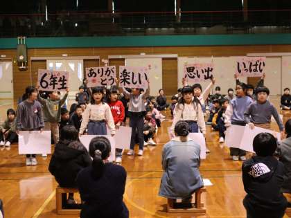 6年生 卒業を祝う会に招待されました 公開日 2024/03/01 更新日 2024/03/01 6年生 1年生からメダル、2年生から招待状をもらい卒業を祝う会に参加しました。 会の中では、各学年の発表を見たり参加したりして、今まで自分がかかわってきた下級生の姿に感動していました。 1年間、最高学年として草島小学校の先頭に立ち進んでくれた子供たちへの最高のプレゼントでした。
