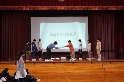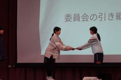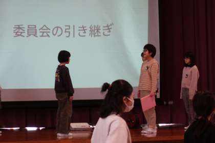 5年生 児童会引き継ぎ式 公開日 2024/03/06 更新日 2024/03/06 5年生 児童会引き継ぎ式を行いました。委員会の副委員長が代表で委員会ファイルを受け取りました。代表児童が6年生のすごさを語った後、草島小学校を引き継ぐ意思を伝えました。5年生、気持ちが高まっています。