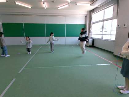 1年生 なわとびの練習 公開日 2024/03/07 更新日 2024/03/07 1年生 友達の跳んだ数を数え合ったり、なわとびの技を見せ合ったりしながら練習していました。うしろとびや交差とびは難しいのですが、何度も引っかかりながらもあきらめず挑戦していました!