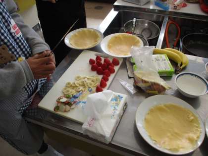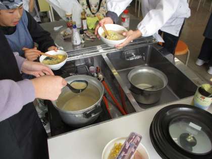 家庭科の調理実習を行いました。各班でだんらんの時間を計画してきました。どの班も楽しい時間となったようです。