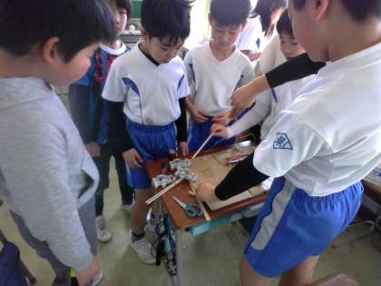 おもちゃをつくって遊びました。友達つくったおもちゃを理科の性質を思い出しながら全力で遊びました。