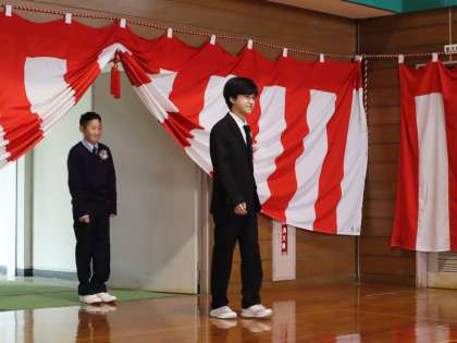 令和6年3月18日、令和5年度卒業式を行いました。子供たちは、威風堂々の曲に合わせて胸を張って入場しました。卒業証書授与では、担任の呼名に堂々と返事をしていました。