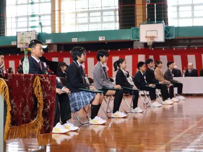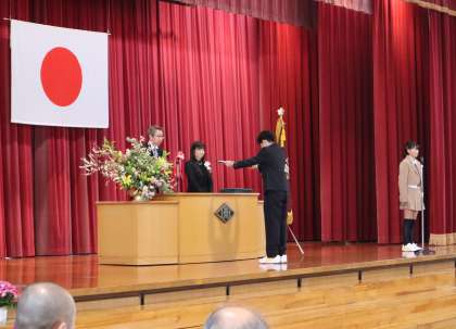 令和6年3月18日、令和5年度卒業式を行いました。子供たちは、威風堂々の曲に合わせて胸を張って入場しました。卒業証書授与では、担任の呼名に堂々と返事をしていました。