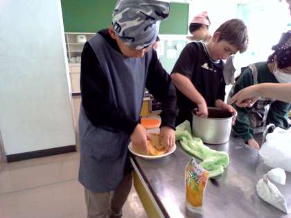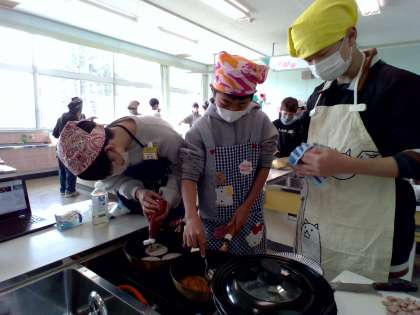 5年生 家庭科の学習 2 公開日 2024/03/19 更新日 2024/03/19 5年生 スポンジケーキのチームは、炊飯器で作っていました。炊飯器を開ける瞬間が1番ドキドキしていました。ピザチームも手際よく作っていました。とってもおいしくできていましたよ!