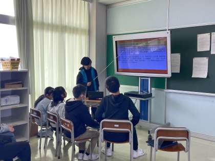 4年生 社会科 まとめたことを発表しよう 公開日 2024/03/19 更新日 2024/03/19 4年生 一年間の社会科の学習を通して、特に興味をもったことをスライドにまとめて発表しました。クイズや動画を混ぜて見ている人に分かりやすくまとめていました。また、話す・聞く態度の成長も見られました。