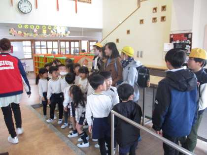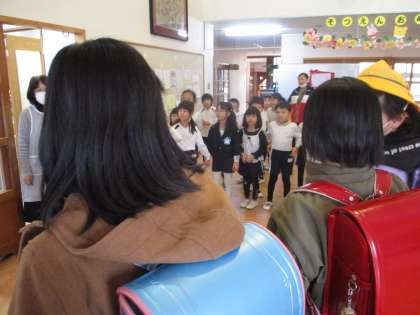 明日卒園を迎える年長児さんをお祝いするメッセージを届けました。年長児さんや幼稚園の先生たちから「ありがとう」「入学したらお願いします」と言葉をかけてもらいました。