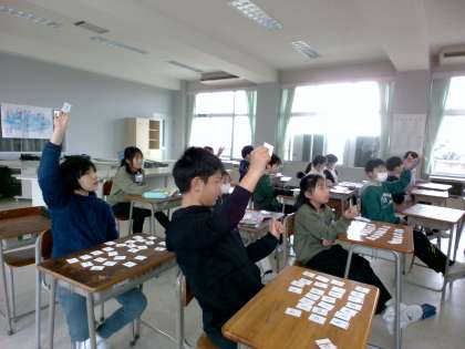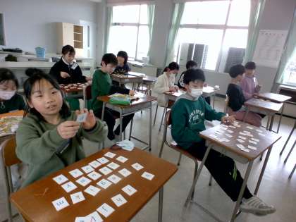 今年度最後の外国語活動の授業では、今まで学習した内容をゲームで楽しみながら振り返りました。
