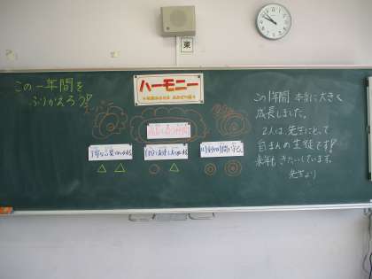 今日は、修了式後の片付けを進んで行ったり、手紙を書いたりしました。それから、4月に立てた学級目標について、振り返りました。