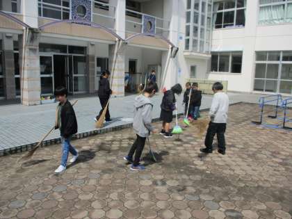 新5年生と新6年生は、明日の入学式に向けて準備を行いました。式の予行練習をしたり、学校の掃除をしたりして、時間いっぱい活動してくれました。