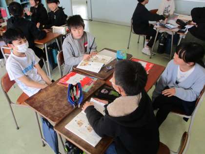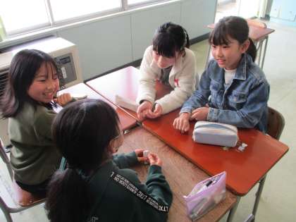 5年生 グループ活動 公開日 2024/04/09 更新日 2024/04/09 5年生 国語の時間にグループの友達と話し合う活動を行いました。決められたキーワードを友達から引き出そうとして、意欲的に話合いに参加する子供たちの姿が多く見られました。