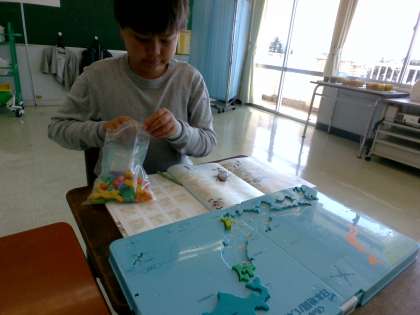 社会では、絵やパズルを使って、都道府県を見つけました。