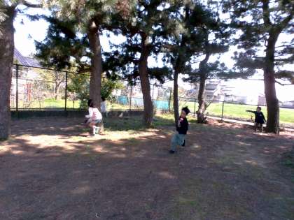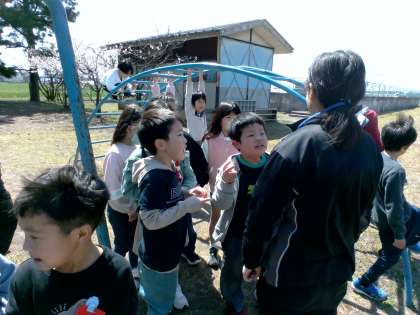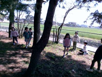 今日はあおぞらが広がり、グラウンドで十字おにごっことおにごっこを楽しみました。