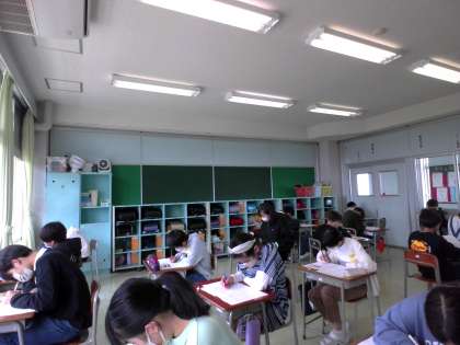 6年生 県学力調査 公開日 2024/04/11 更新日 2024/04/11 6年生 昨年度までの学習の歩みを確認する県学力調査に取り組みました。 4教科とも真剣に取り組む姿が見られました。後日、結果をもとに学習への取り組みを振り返る場を設けたいと思います。