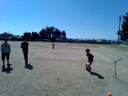 のびのびタイムにグラウンドで遊んでいました。6年生とキャッチボールをしたり、くさじまオリジナルのバトンロケットを教えてもらい、楽しんでいました。