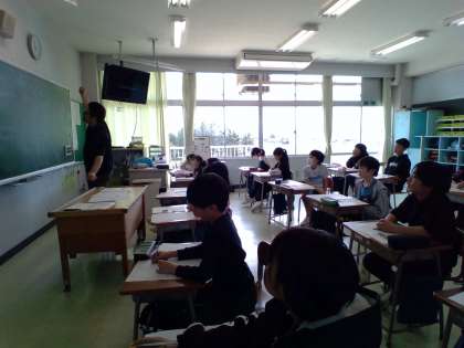 テストの見直しをしました。担任が話すことに聞き入り、真剣に学習に取り組んでいました。