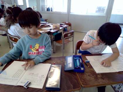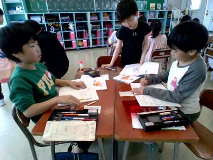3年生 算数の学習 公開日 2024/04/16 更新日 2024/04/16 3年生 工夫してかけ算をしました。同じ数のかたまりをみつけたり、色を変えて囲んだり、友達とグループになって考えたりしていました。