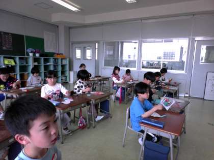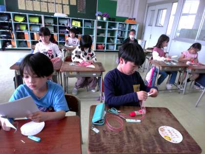 新しい1年生さんの入学を全校で祝おうと、6年生が中心となって集会を開くことにしました。「2年生さんは、メダルを作ってください」という6年生さんの依頼を受けて、一人ひとりに宛名とメッセージを書いたメダルを作りました。得意なことを生かして役割を分担し、協力して仕上げました。喜んでもらえるかな、と、ドキドキしています。
