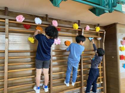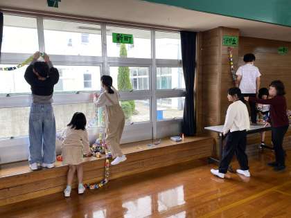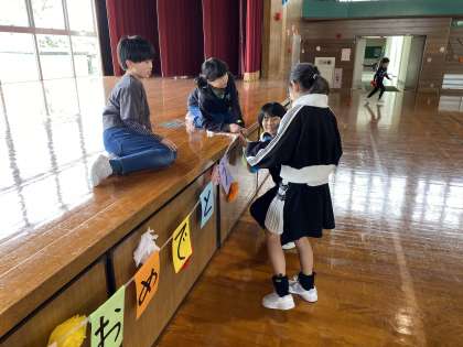4,5年生 入学を祝う会の準備 公開日 2024/04/18 更新日 2024/04/18 5年生 4,5年生は「入学を祝う会」の準備で、体育館の飾りつけをしました。自分たちでバランスを見ながら、どこに何を掲示すればよいのかを考えて活動する姿はすてきでした。
