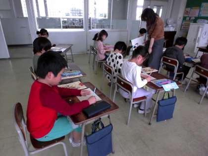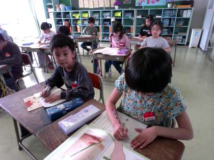 2年生 教頭先生の授業 公開日 2024/04/18 更新日 2024/04/18 2年生 1年生の時までは、担任の授業だけを受けていた子供たちが、2年生になって、他の先生が毎週授業をする「出張授業」を初めて受けました。教頭先生に書き順のルールを教えていただき、どの漢字のどの部分にそのルールが使われているかを見つけました。いつも以上に姿勢と鉛筆の持ち方に気を付けて、丁寧に字を書きました。