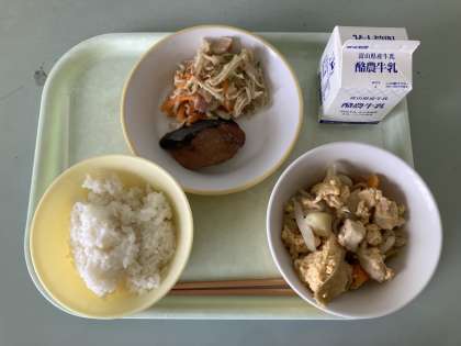 4月19日の給食 公開日 2024/04/19 更新日 2024/04/19 メール用カテゴリ 今日の給食は、 ごはん ぎゅうにゅう ふくらぎのてりやき はりはりソテー たまごとじ です。 今日もおいしくいただきました。