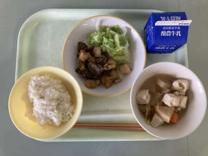 4月24日の給食 公開日 2024/04/24 更新日 2024/04/24 メール用カテゴリ 今日の給食は ごはん ぎゅうにゅう さかなとレバーのあげからめ ゆでキャベツ ごまけんちん です。 今日もおいしくいただきました。
